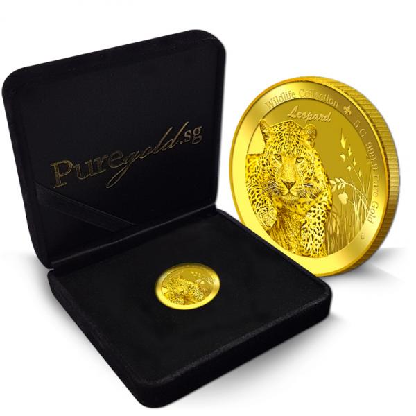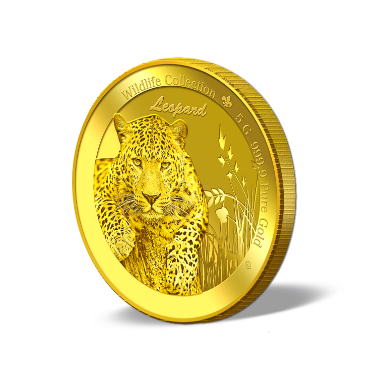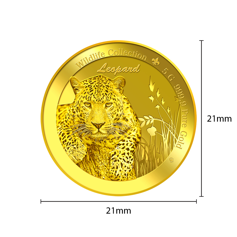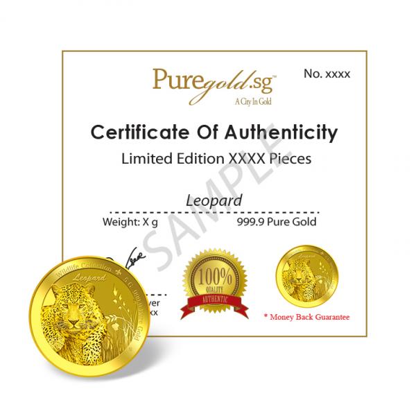 The image of the leopard is embossed on a 5G 999.9 fine gold.