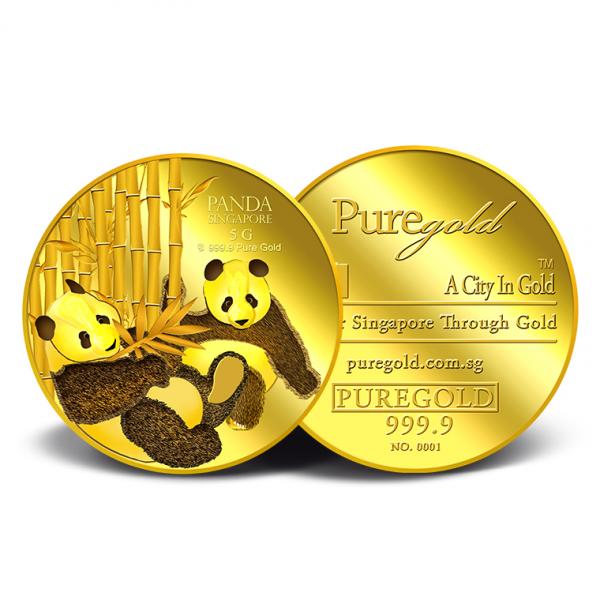 The image of the two giant pandas is embossed on a 5g 999.9 fine gold.