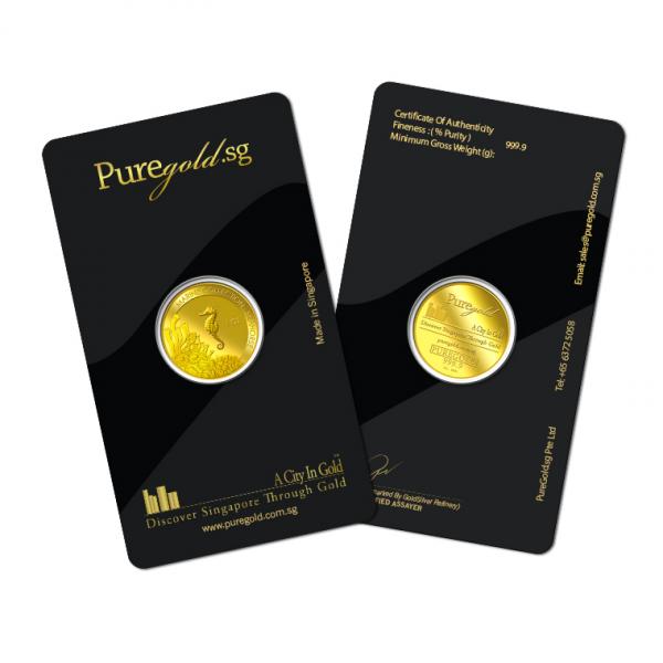 The image of the Seahorse is embossed on a 1oz 999.9 fine gold Medallion.