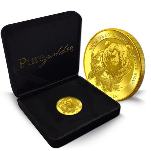 The image of an emerging black bear is embossed on a 1OZ 999.9 fine gold.