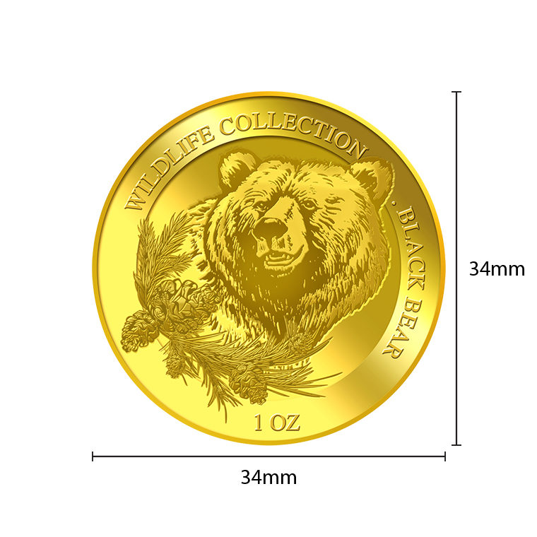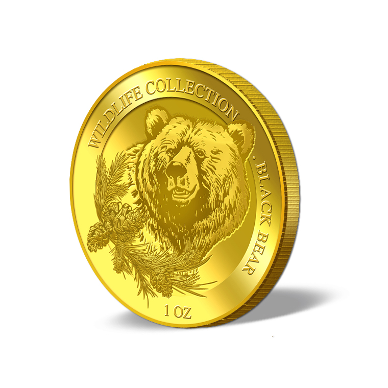 Iconic Reverse DesignThe 1oz black bear gold Medallion design portrays an image of an emerging black bear. The design also includes the inscription WILDLIFE COLLECTION, the Medallion’s weight and fineness, and GoldSilver Refinery’s “GS” logo mark.