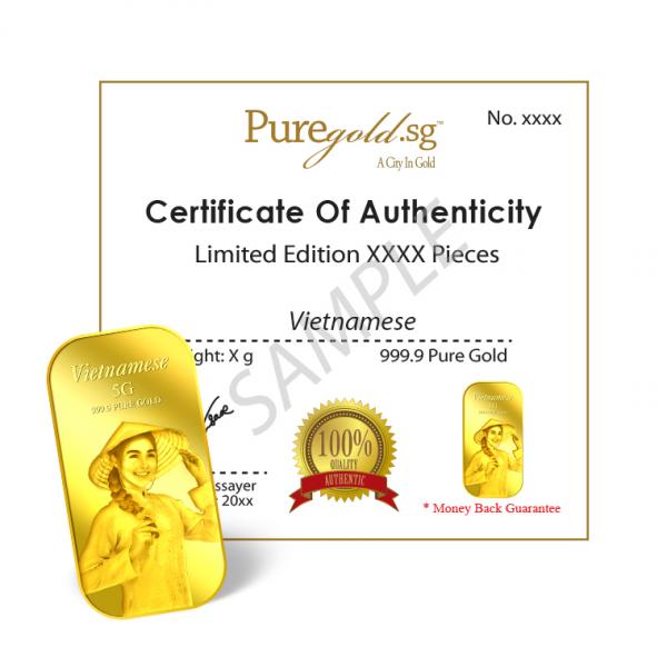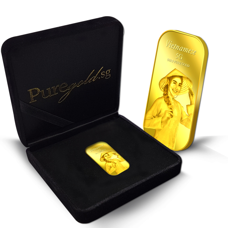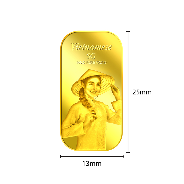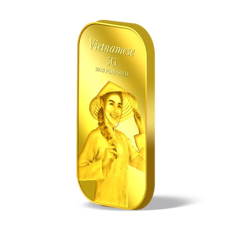 The image of the Vietnamese is embossed on a 5g 999.9 fine gold bar.