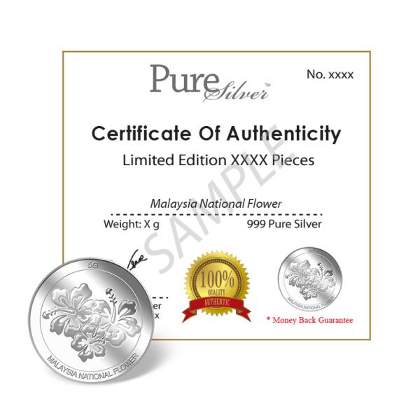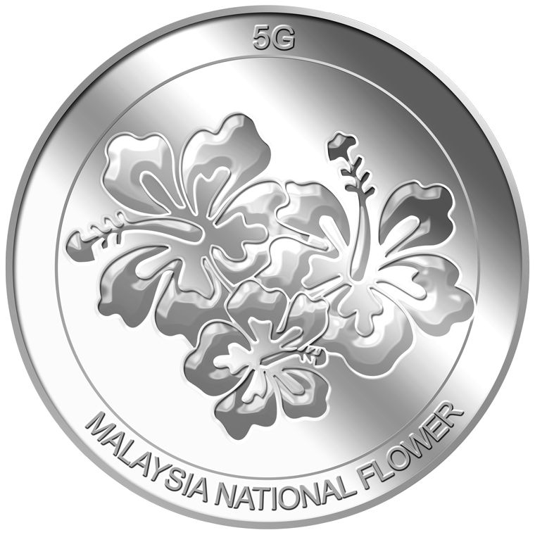 The image of the Hibiscus is embossed on a 5g 999 fine silver medallion.