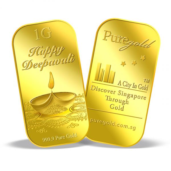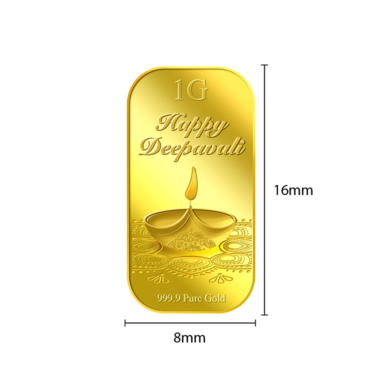 The image of Lamp is embossed on a 1g 999.9 fine gold Bar.