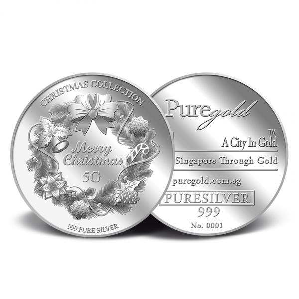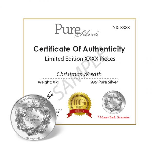 The image of Christmas Wreath is embossed on a 5g 999 fine silver Medallion.