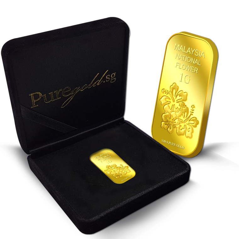 The image of the Hibiscus is embossed on a 1g 999.9 fine gold bar.