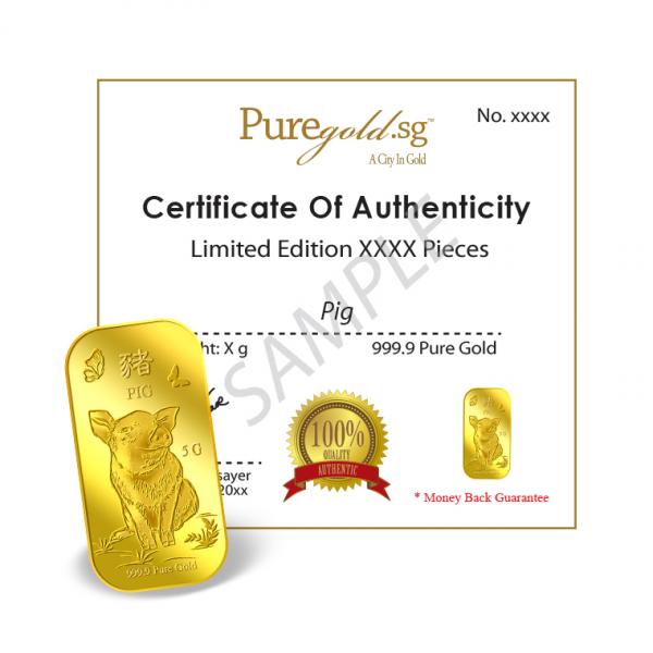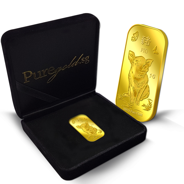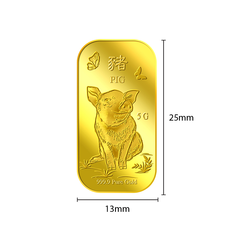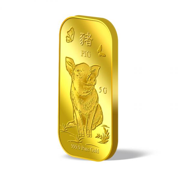The image is embossed on a 5g 999.9 fine gold bar.