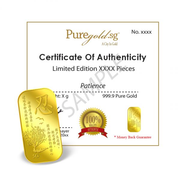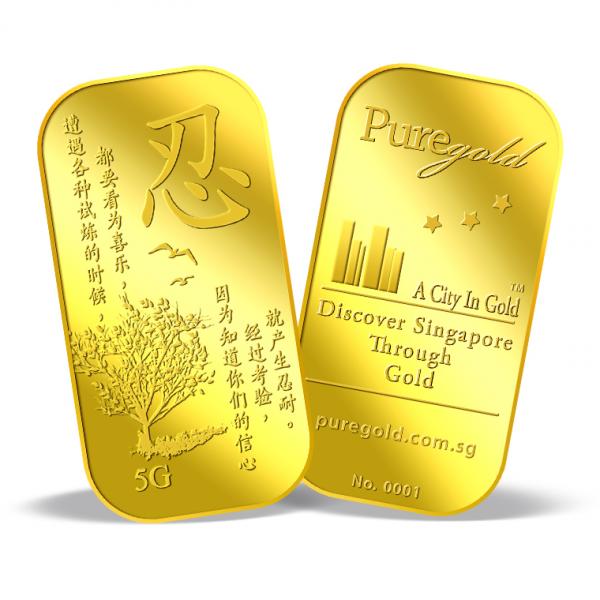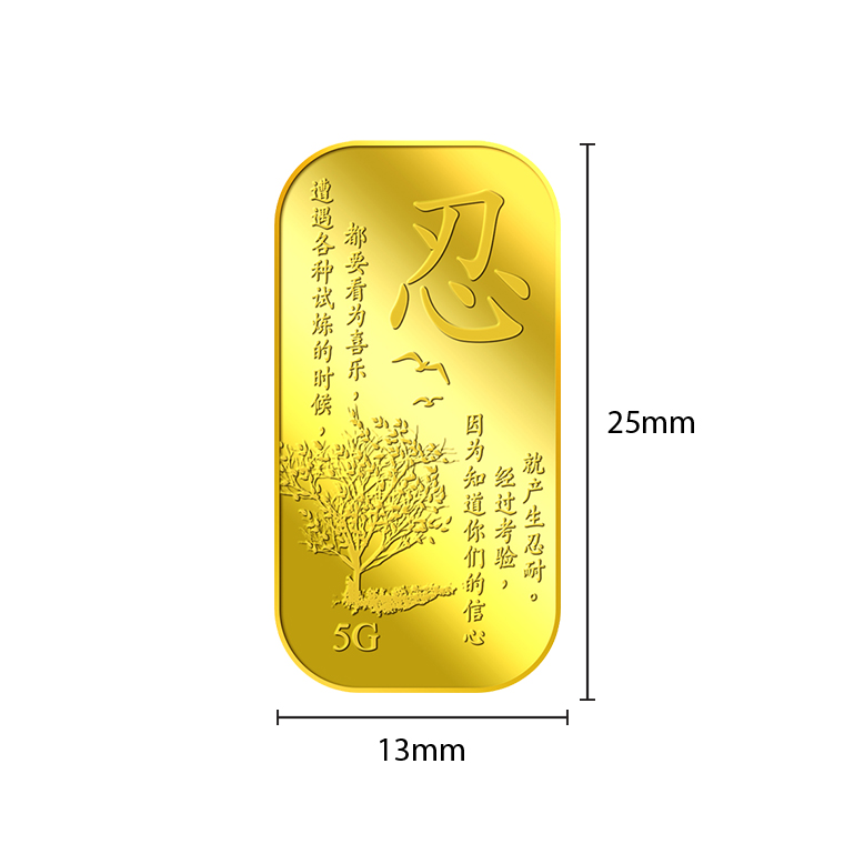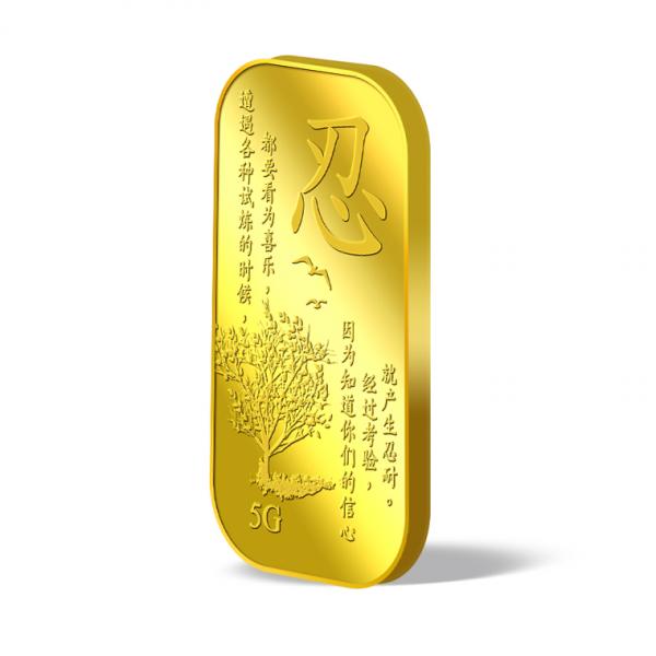 The image is embossed on a 5 grams 999.9 fine gold bar.