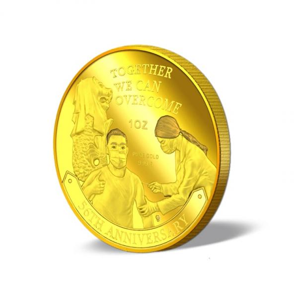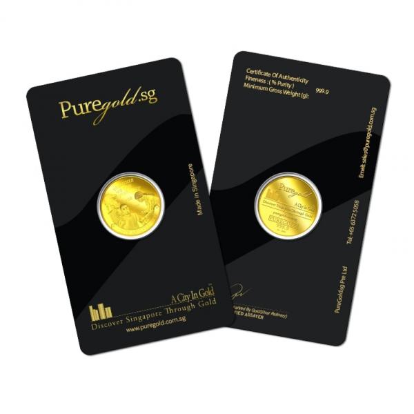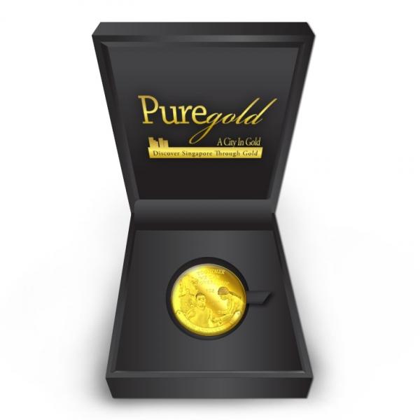 The image is embossed on a 1 troy oz 999.9 fine gold medallion.