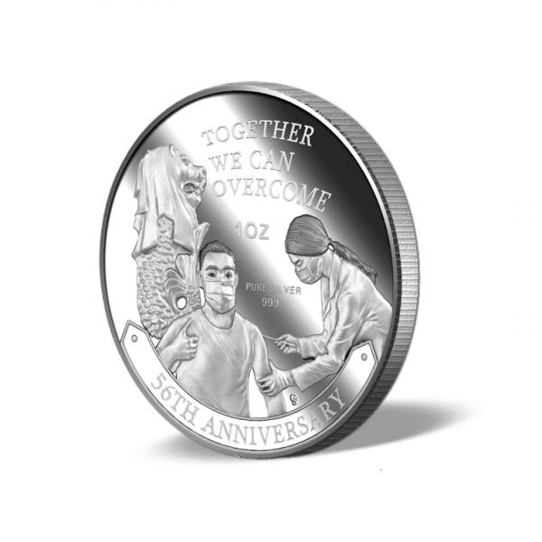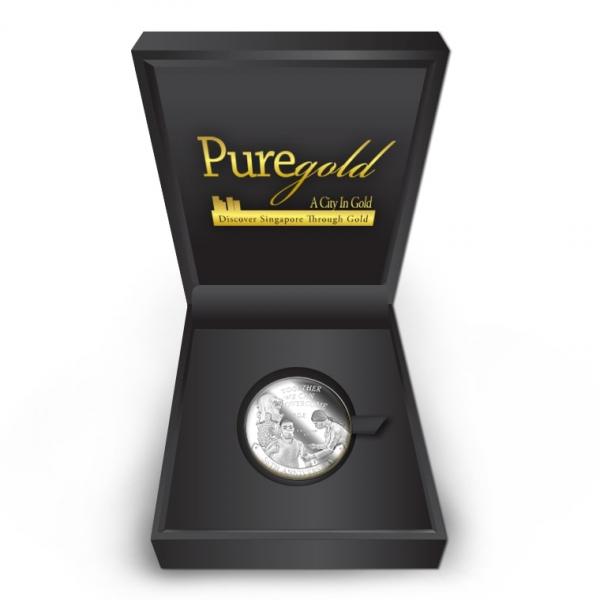 The image is embossed on a 1 troy oz 999 fine silver medallion.