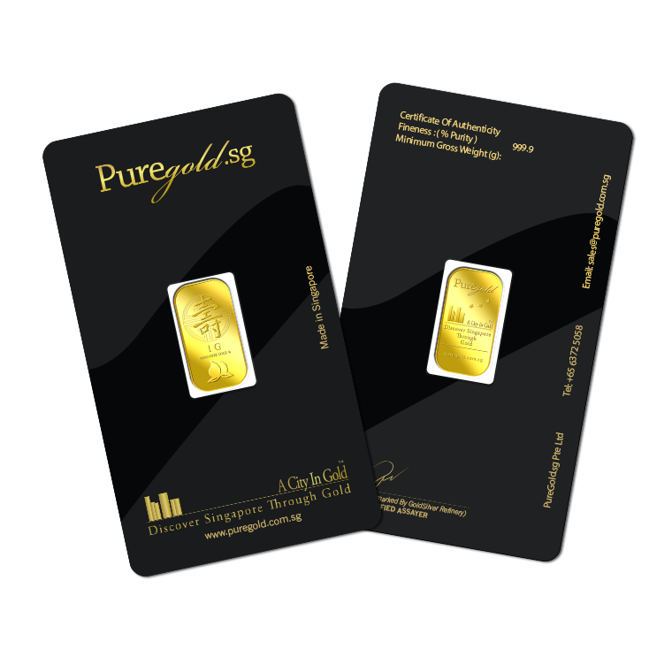 The image is embossed on a 1 gram 999.9 fine gold bar.