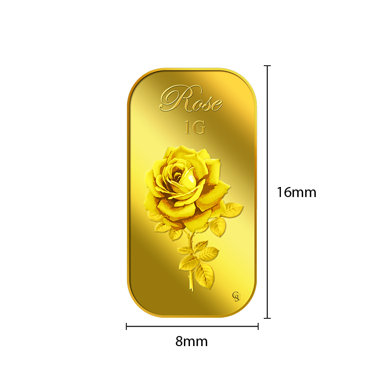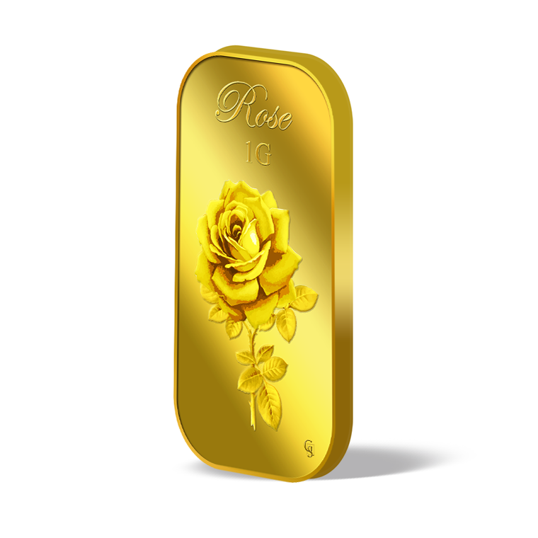 The image is embossed on a 1 gram 999.9 fine gold bar.