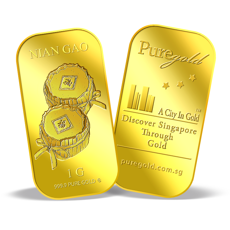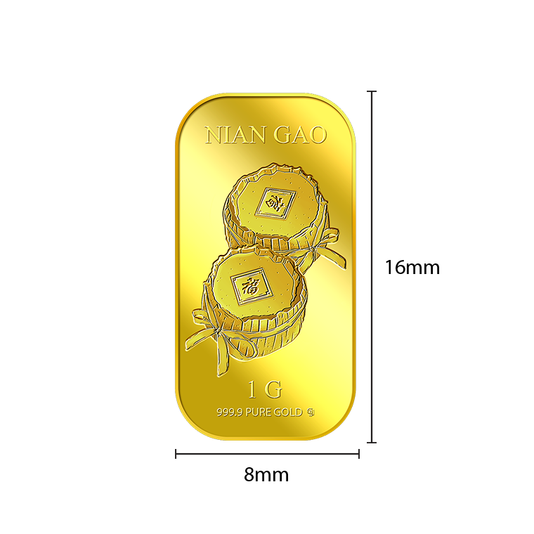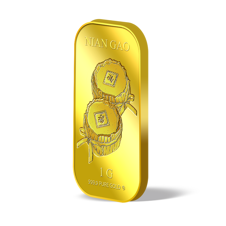 The image is embossed on a 1 gram 999.9 fine gold bar.