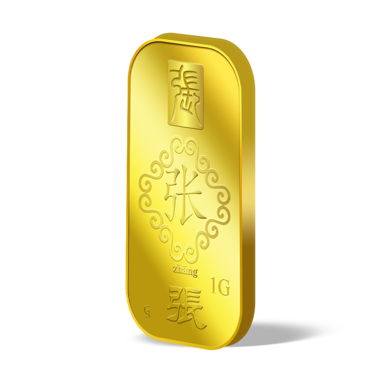 The image is embossed on a 1 gram 999.9 fine gold bar.