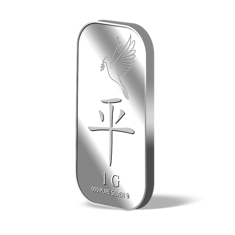 The image is embossed on a 1 gram 999 fine silver bar.