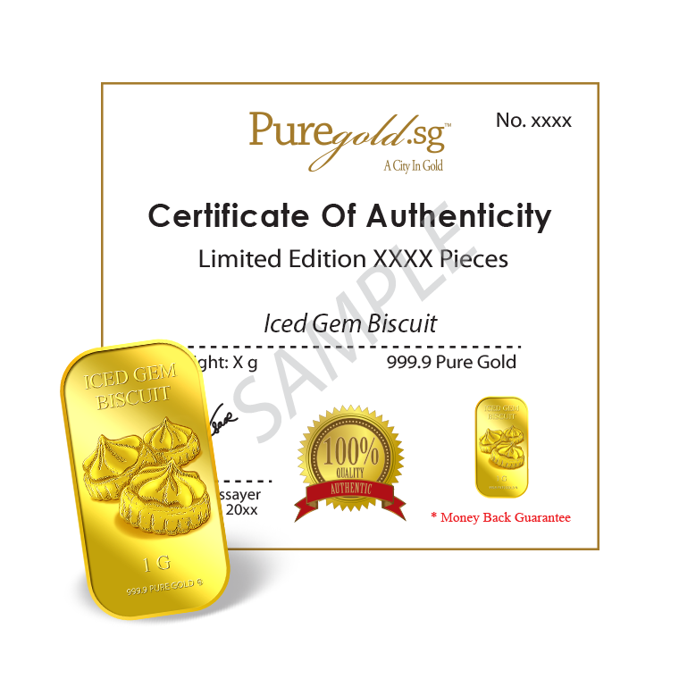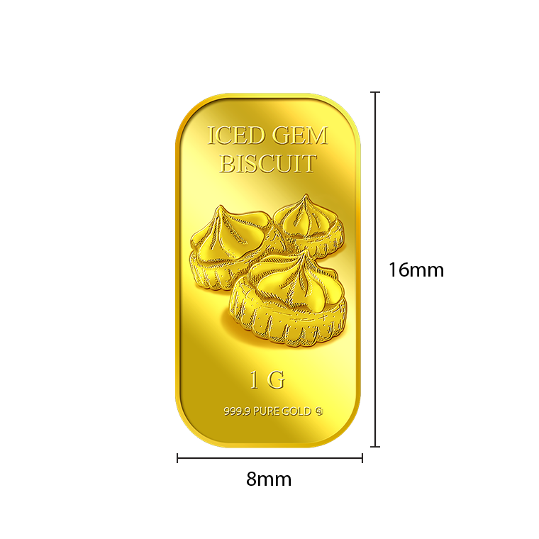 The image is embossed on a 1 gram 999.9 fine gold bar.