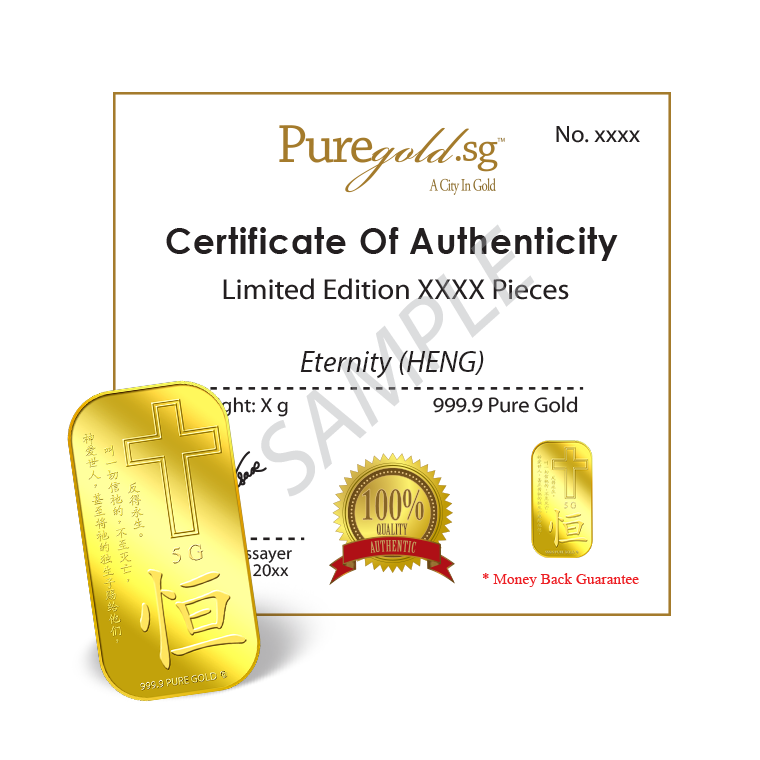 The image is embossed on a 5 grams 999.9 fine gold bar.