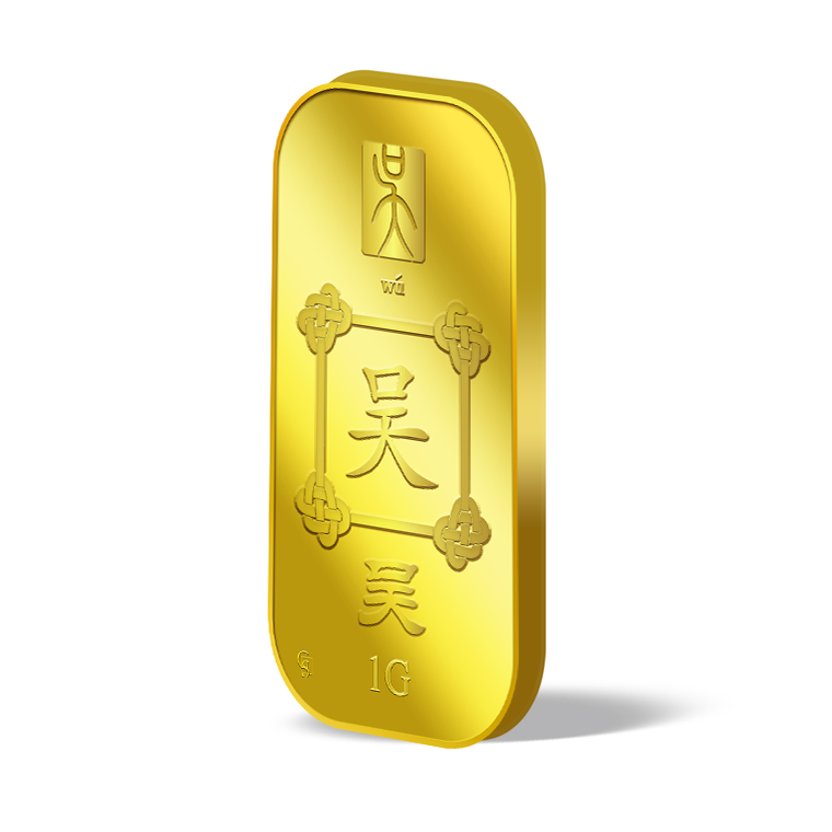 The image is embossed on a 1 gram 999.9 fine gold bar.
