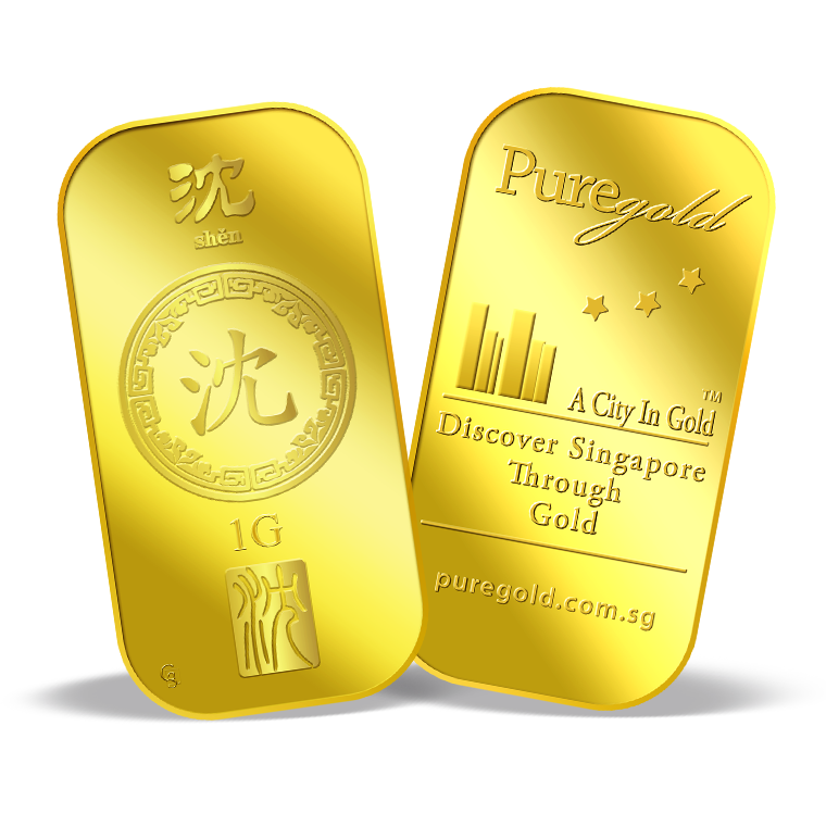 The image is embossed on a 1 gram 999.9 fine gold bar.