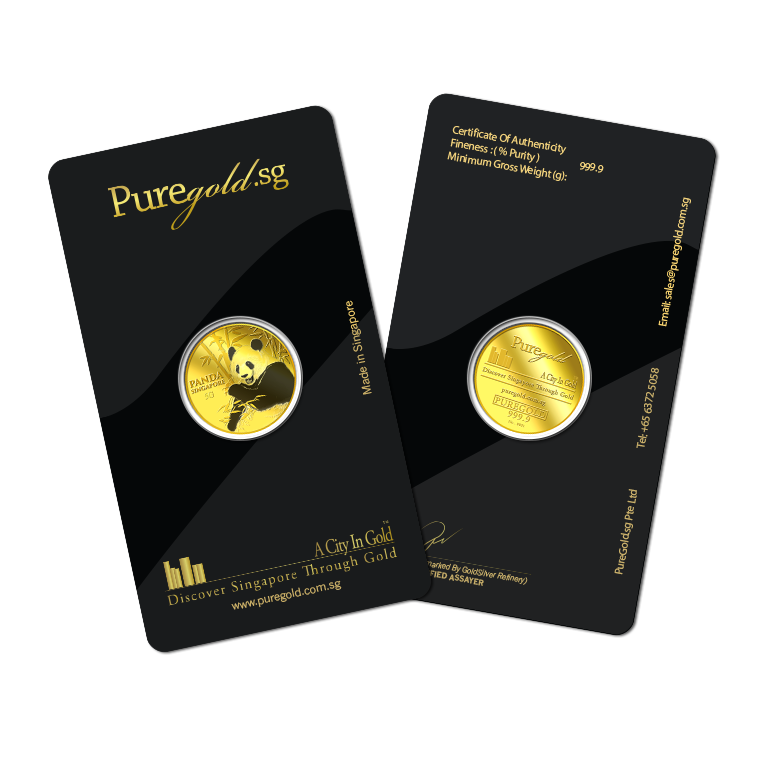 The image is embossed on a 5 grams 999.9 fine gold medallion.