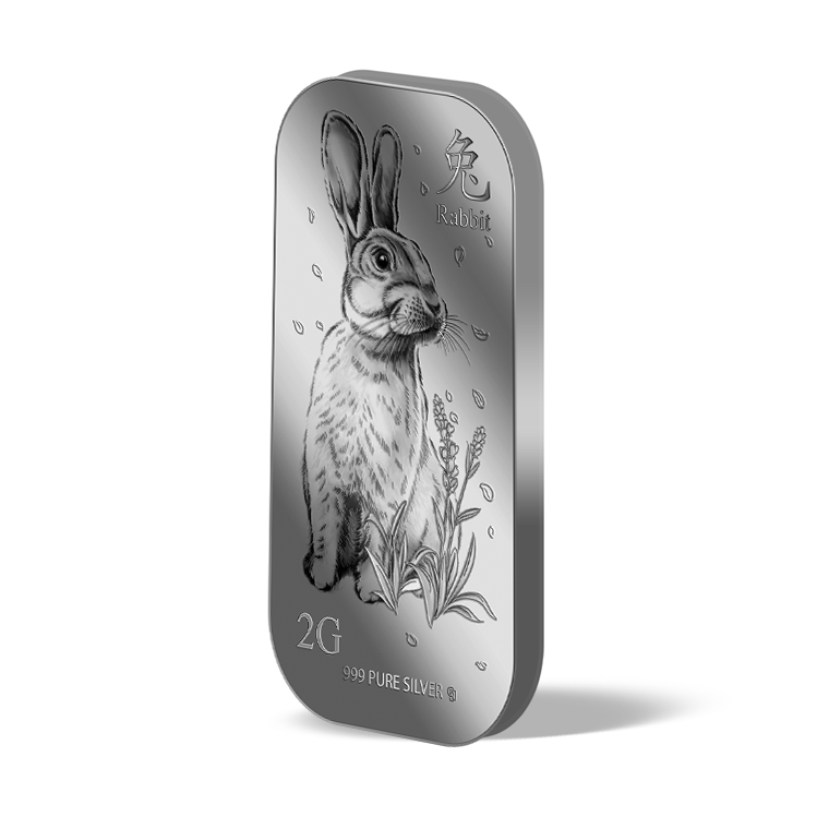 The image is embossed on a 2 grams 999 fine silver bar.