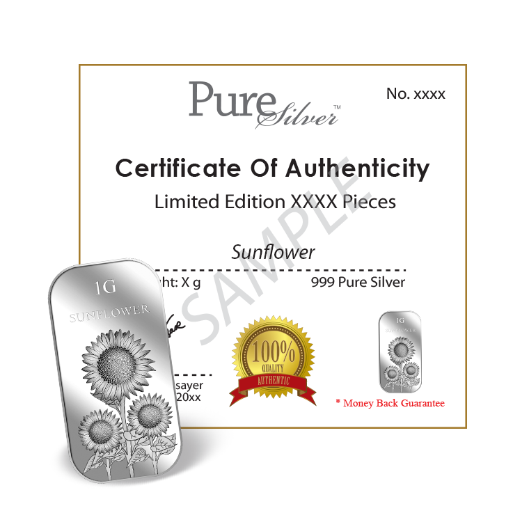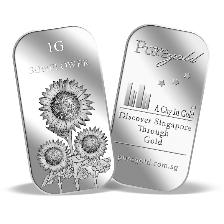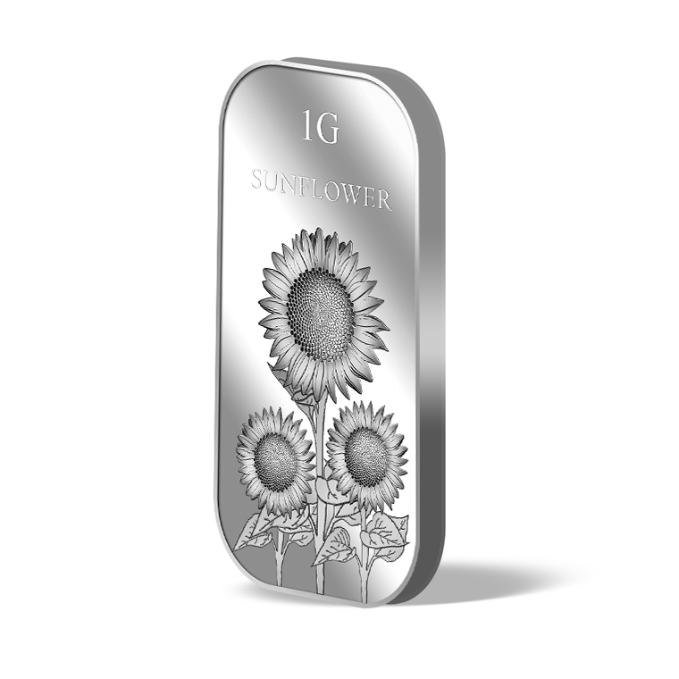 The image is embossed on a 1 gram 999 fine silver bar.