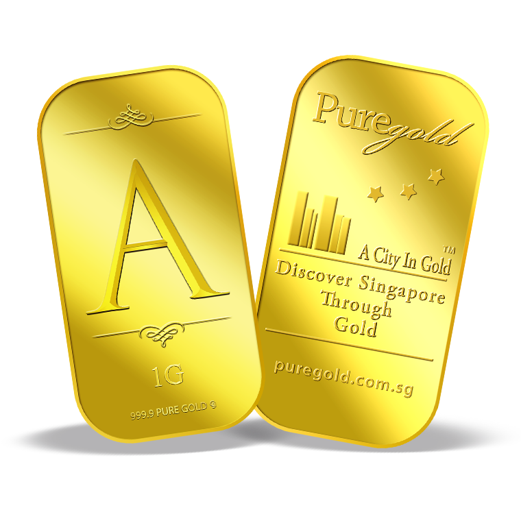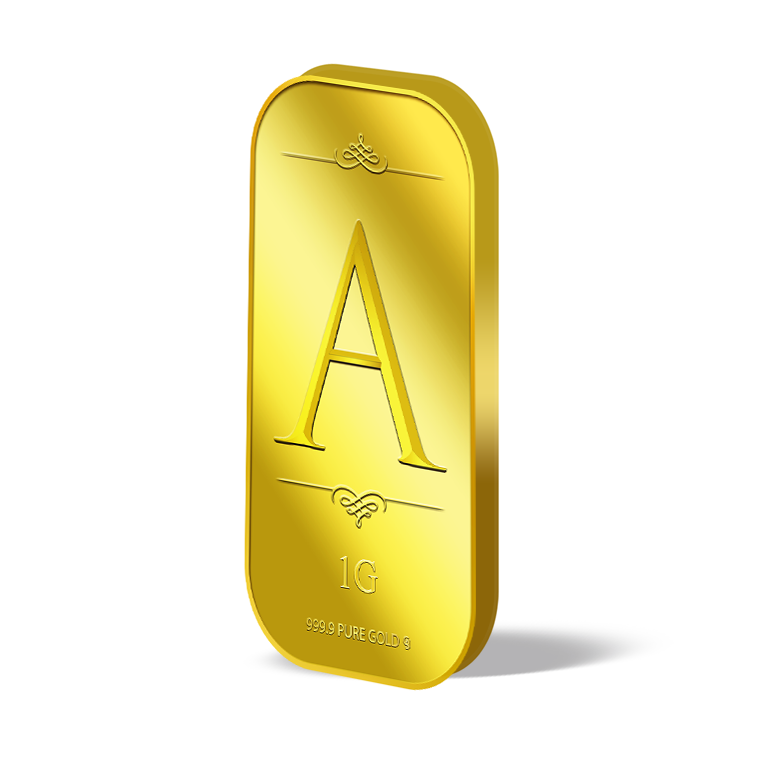 The image is embossed on a 1 gram 999.9 fine gold bar.