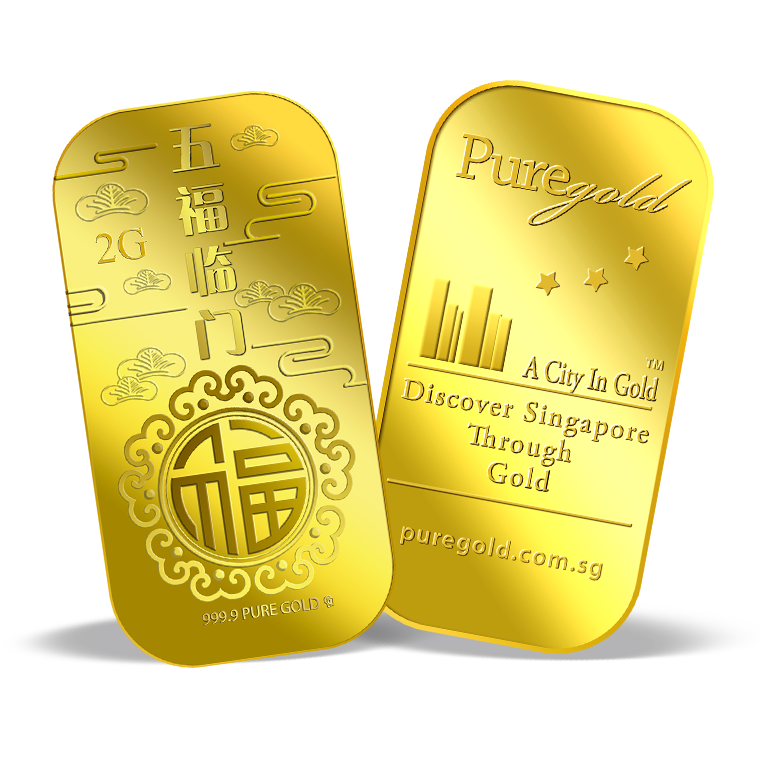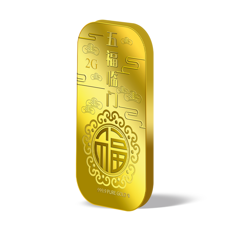 The image is embossed on a 2 grams 999.9 fine gold bar.