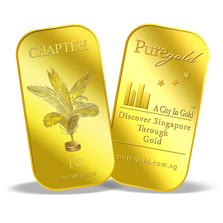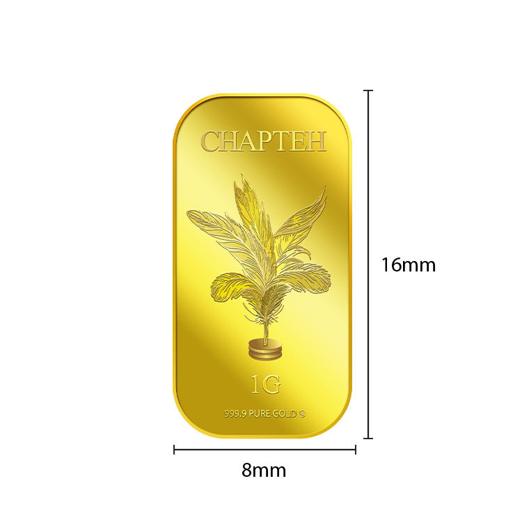 The image is embossed on a 1 gram 999.9 fine gold bar.