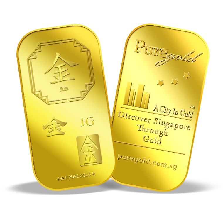 The image is embossed on a 1 gram 999.9 fine gold bar.