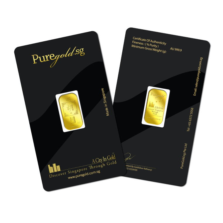 The image is embossed on a 1 gram 999.9 fine gold bar.