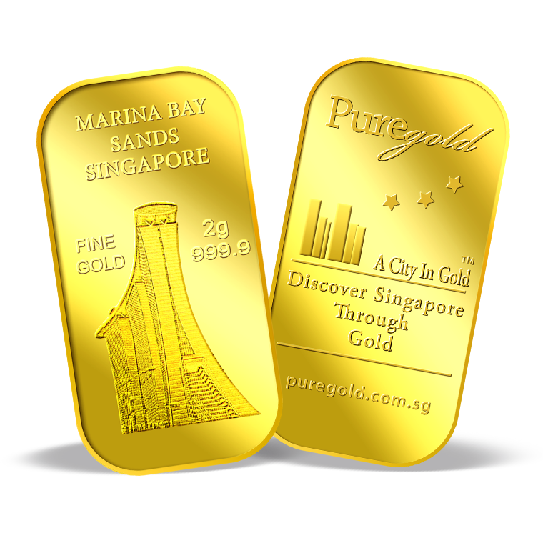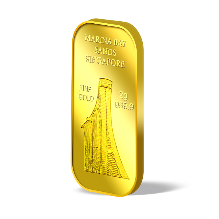 The image is embossed on a 2 grams 999.9 fine gold bar.
