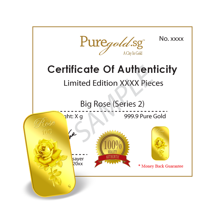 The image is embossed on a 10 grams 999.9 fine gold bar.