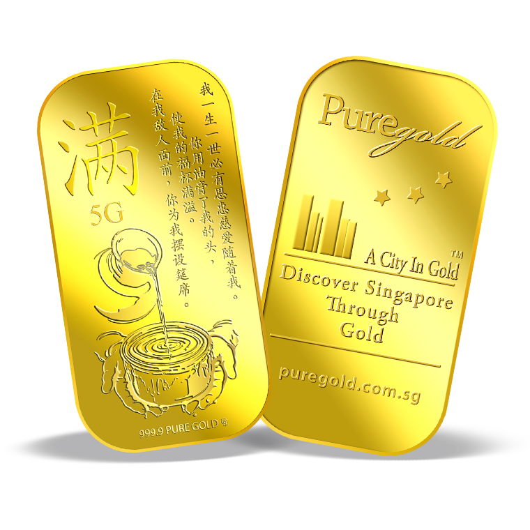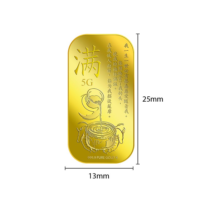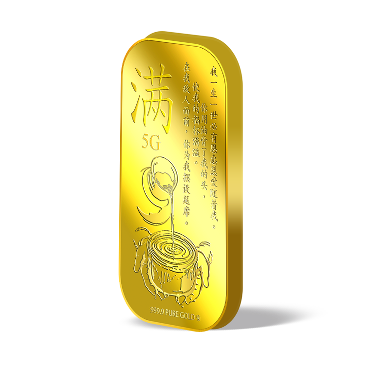 The image is embossed on a 5 grams 999.9 fine gold bar.
