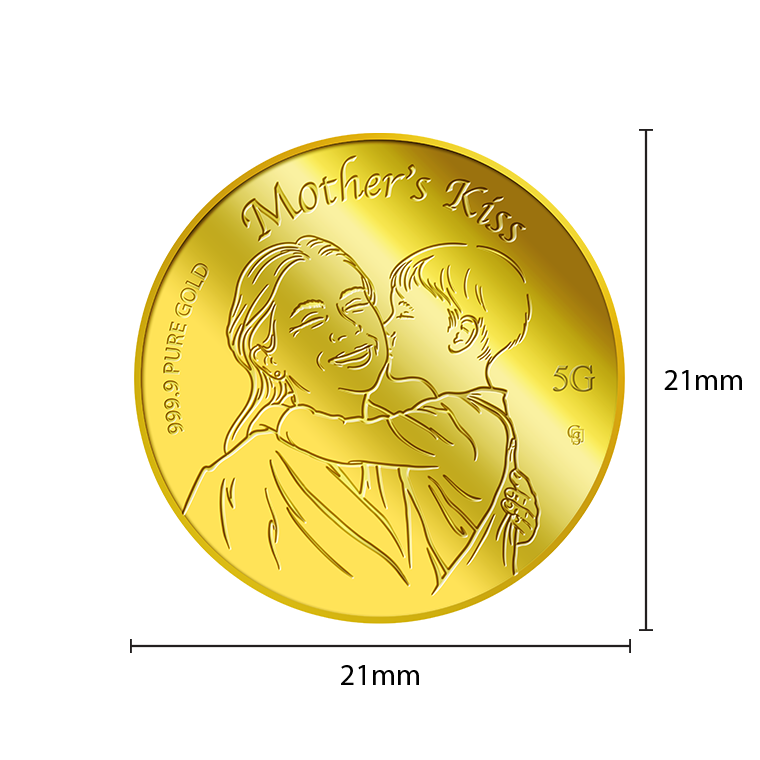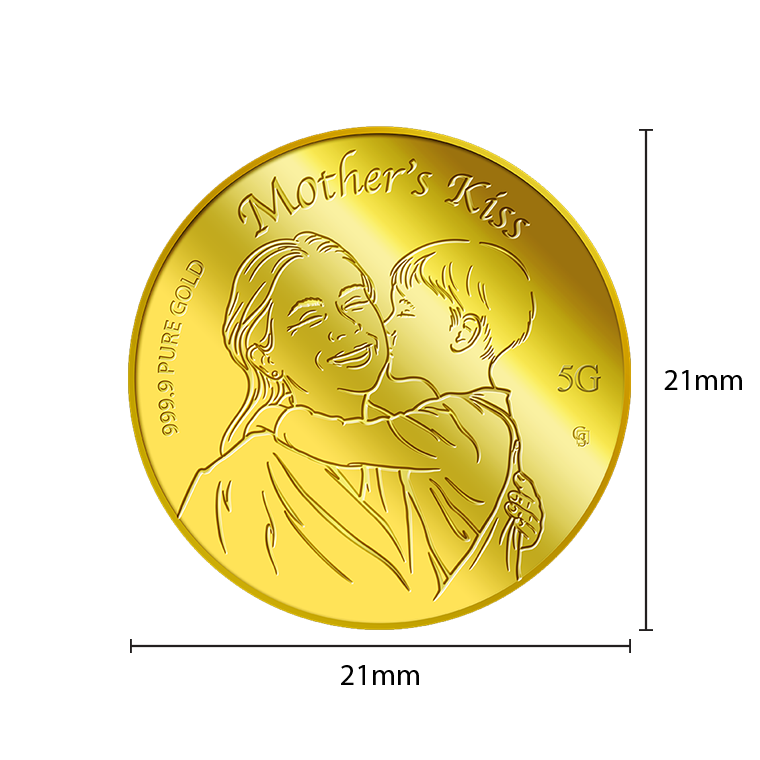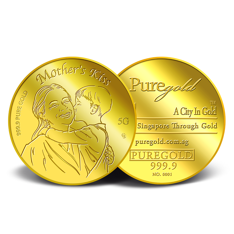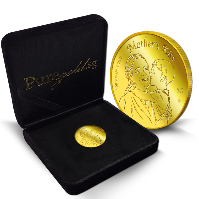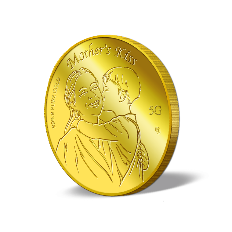 The image is embossed on a 5 grams 999.9 fine gold medallion.