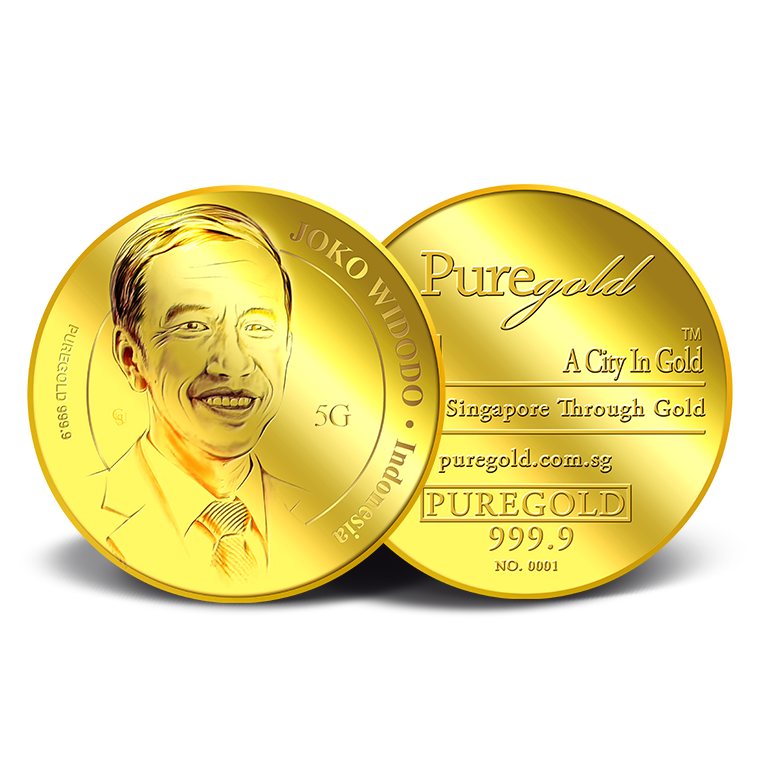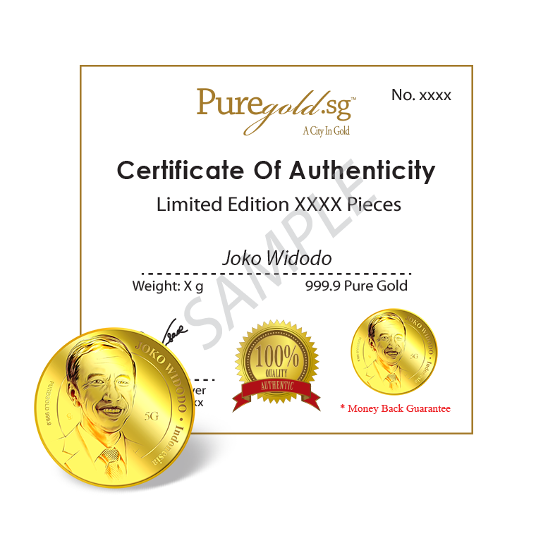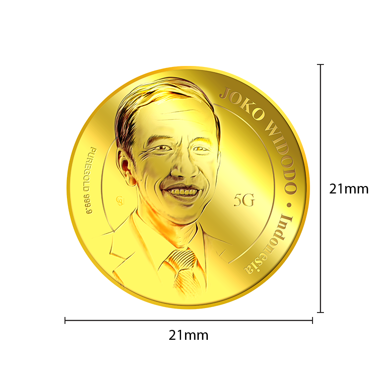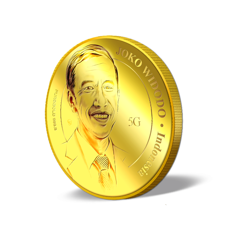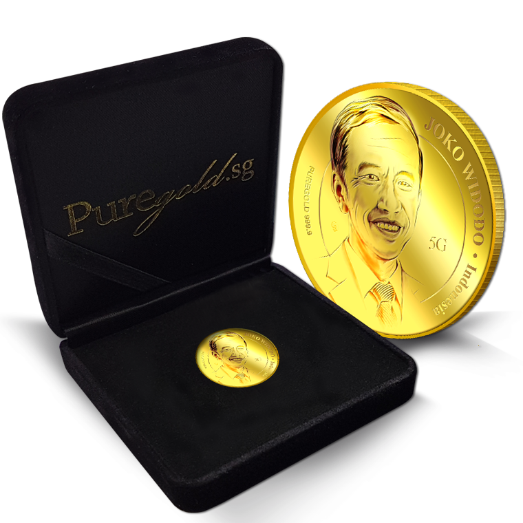The image is embossed on a 5 grams 999.9 fine gold medallion.