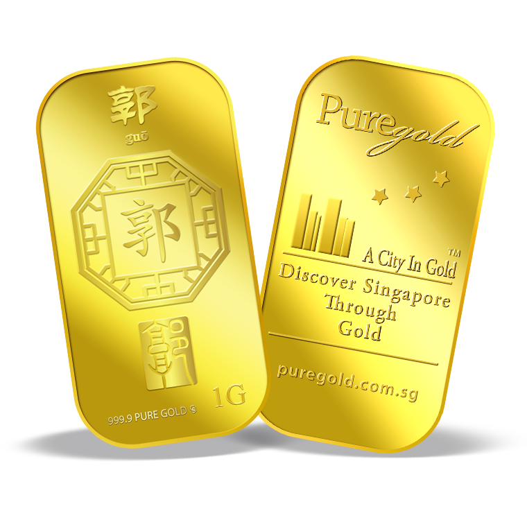 The image is embossed on a 1 gram 999.9 fine gold bar.