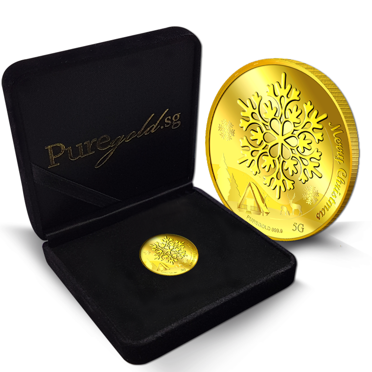 The image is embossed on a 5 grams 999.9 fine gold medallion.