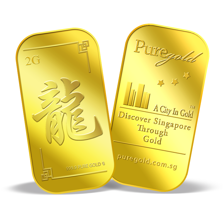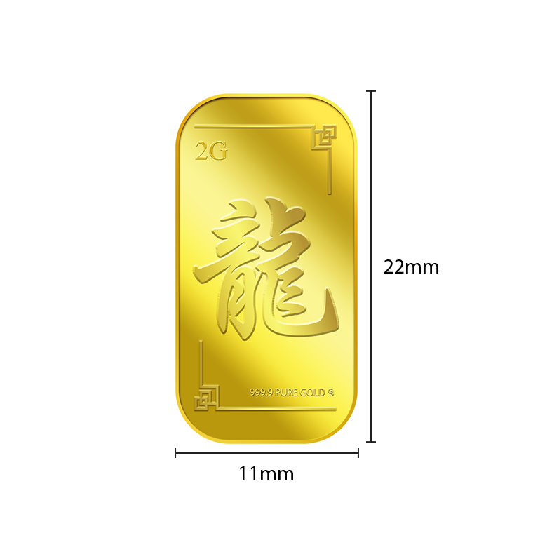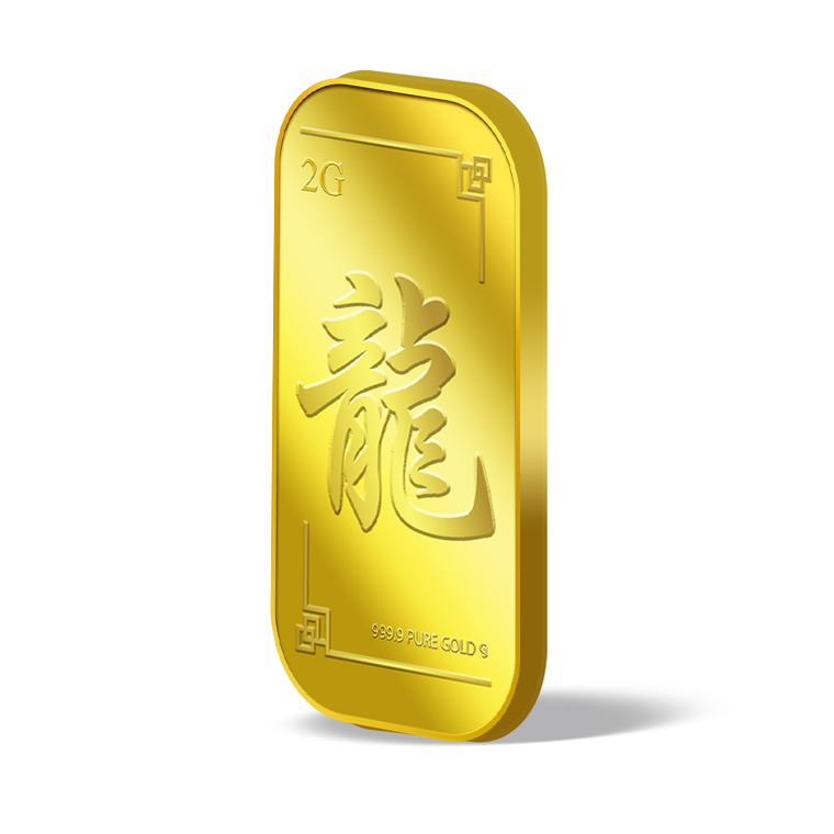 The image is embossed on a 2 grams 999.9 fine gold bar.
