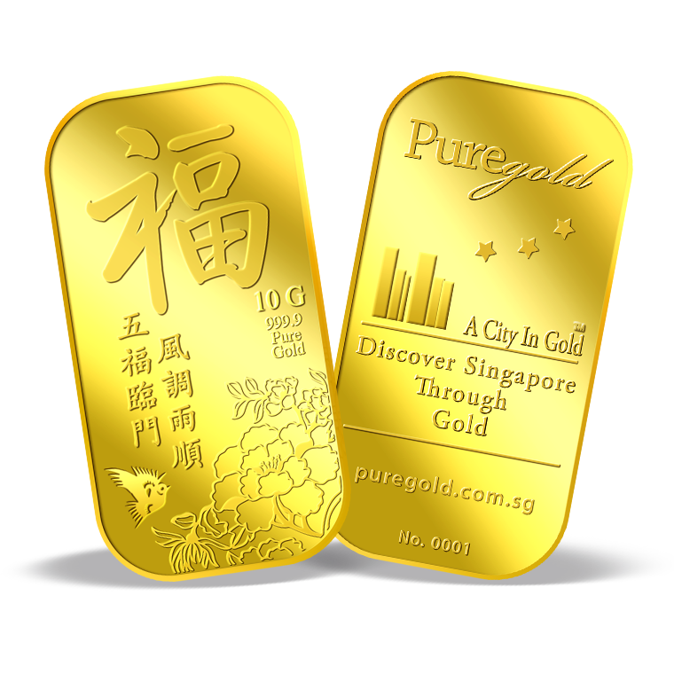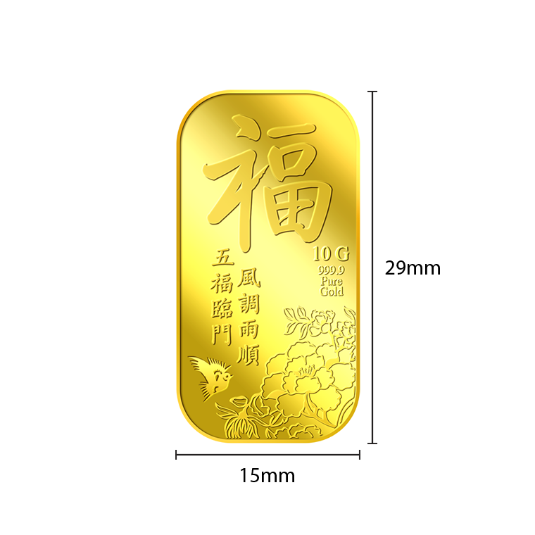 The image is embossed on a 10 grams 999.9 fine gold bar.