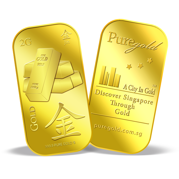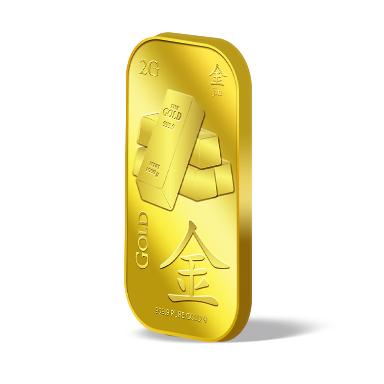 The image is embossed on a 2 grams 999.9 fine gold bar.