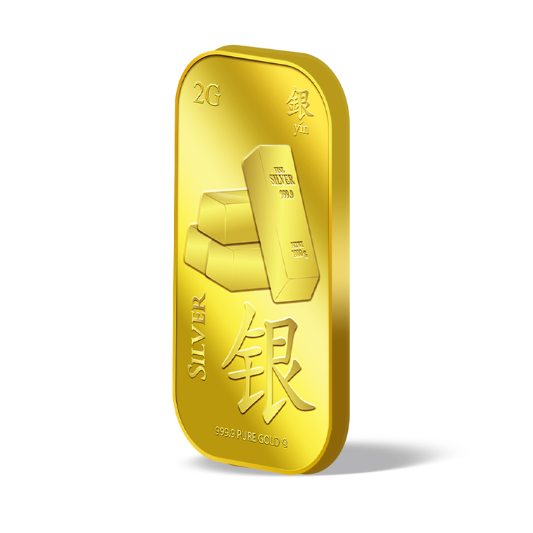 The image is embossed on a 2 grams 999.9 fine gold bar.
