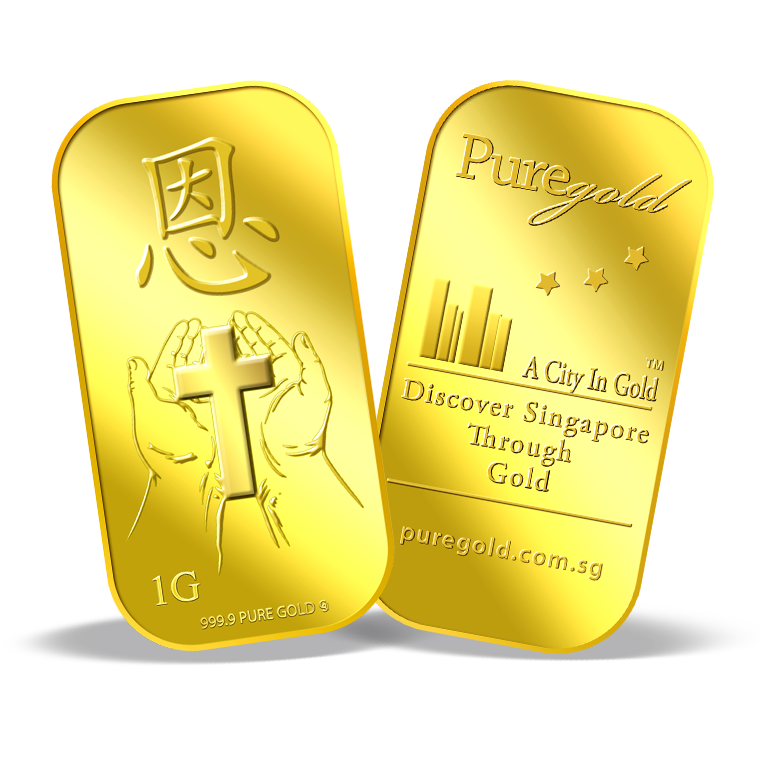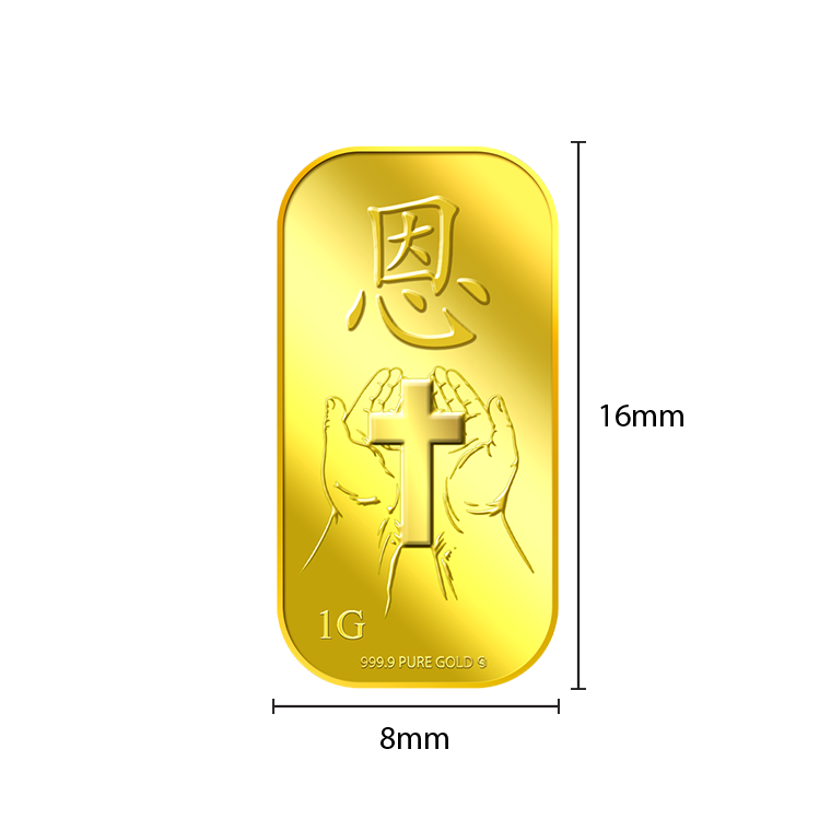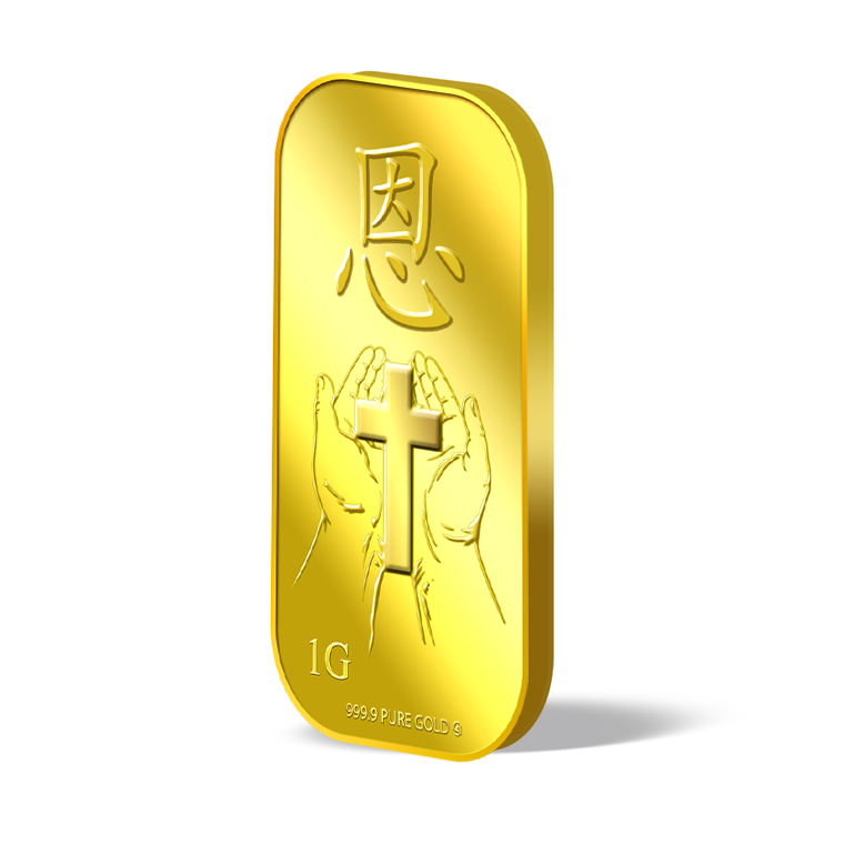 The image is embossed on a 1 gram 999.9 fine gold bar.