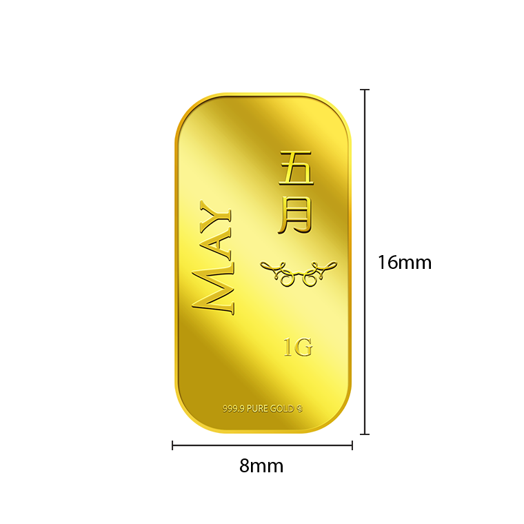 The image is embossed on a 1 gram 999.9 fine gold bar.