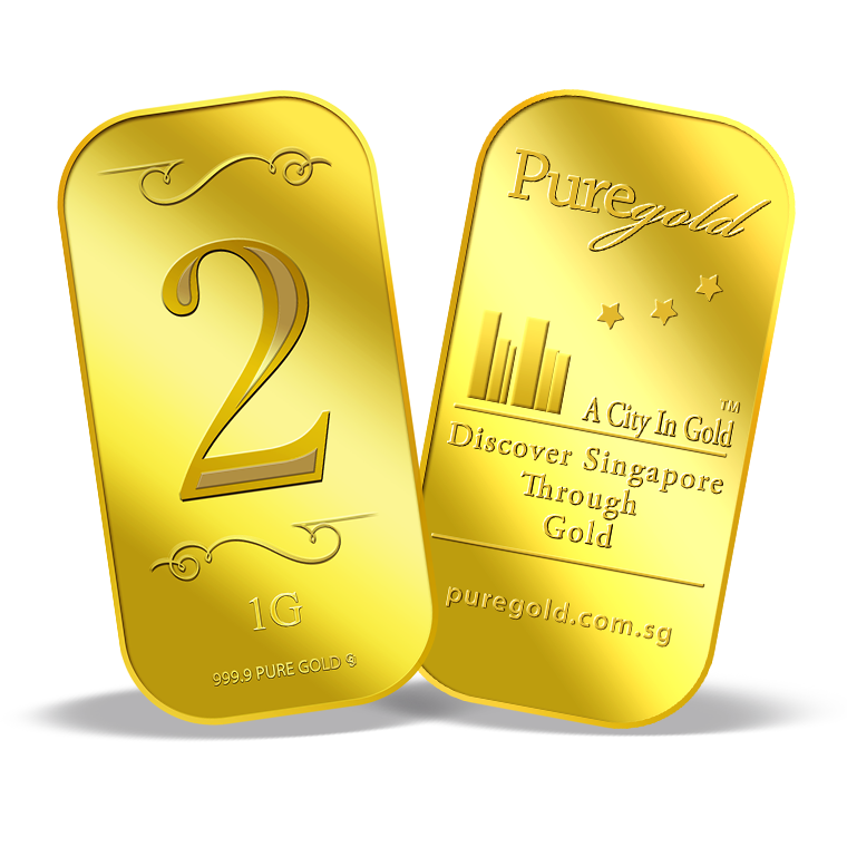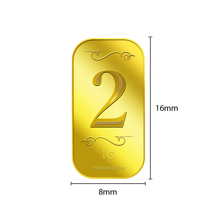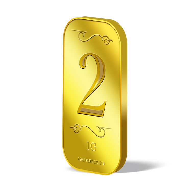 The image is embossed on a 1 gram 999.9 fine gold bar.