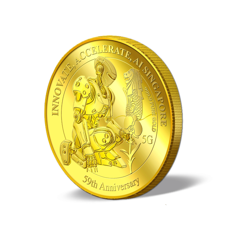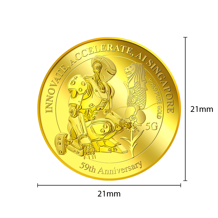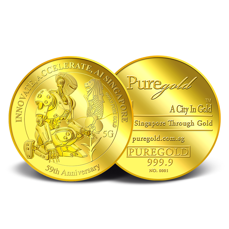 The image is embossed on a 5 grams 999.9 fine gold medallion.