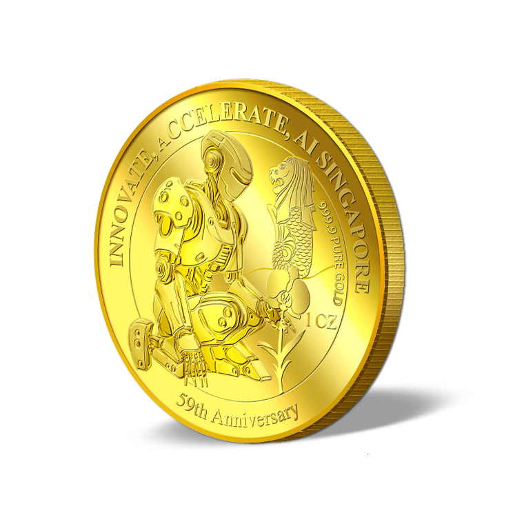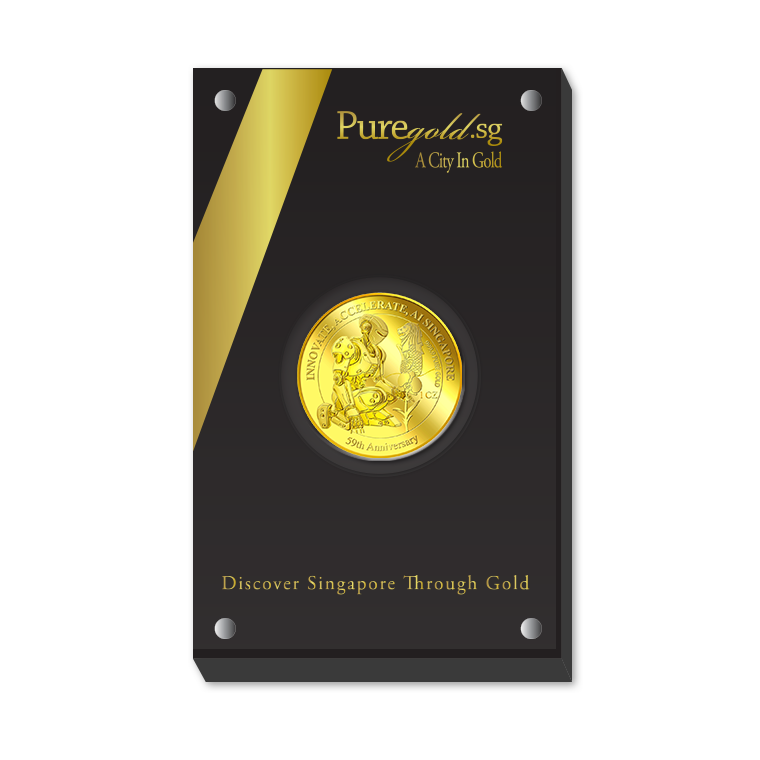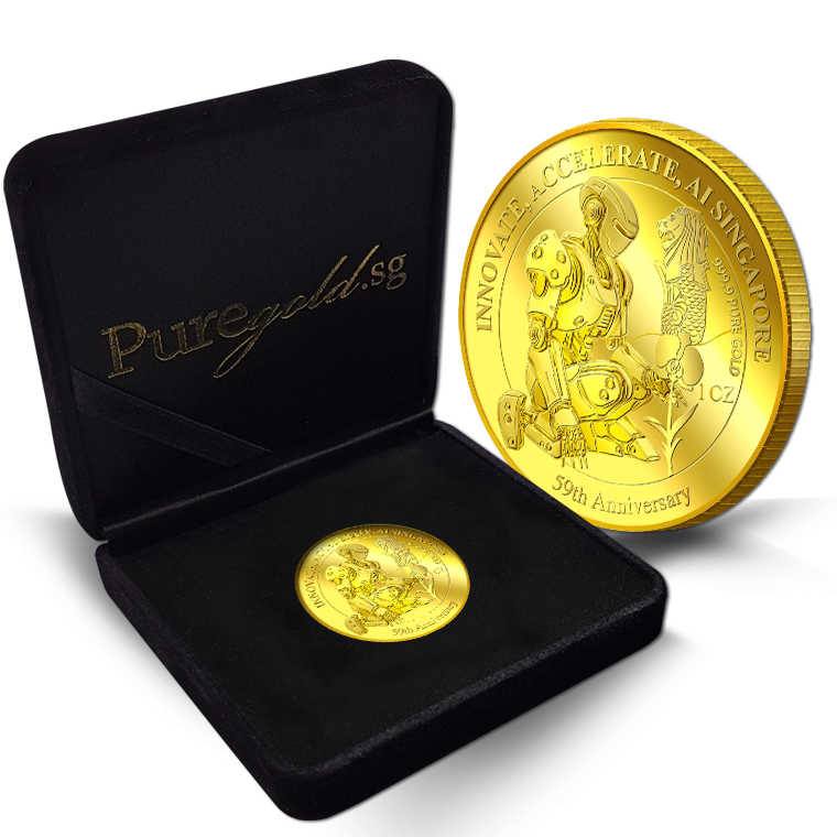 The image is embossed on a 1 troy oz 999.9 fine gold medallion.