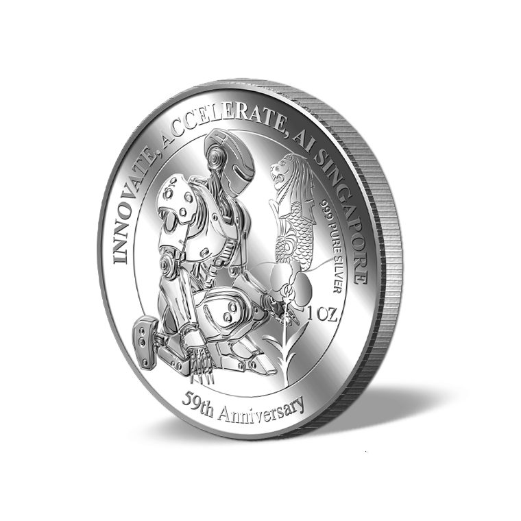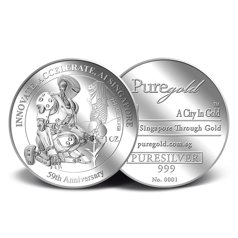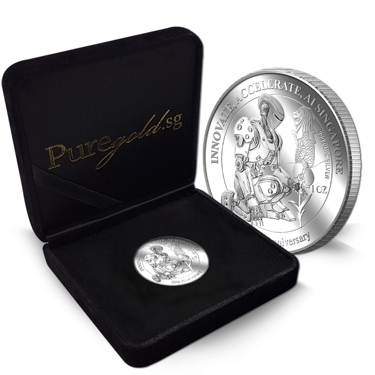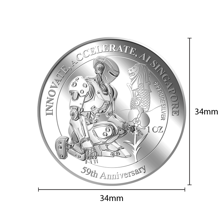 The image is embossed on a 1 troy oz 999 fine silver medallion.