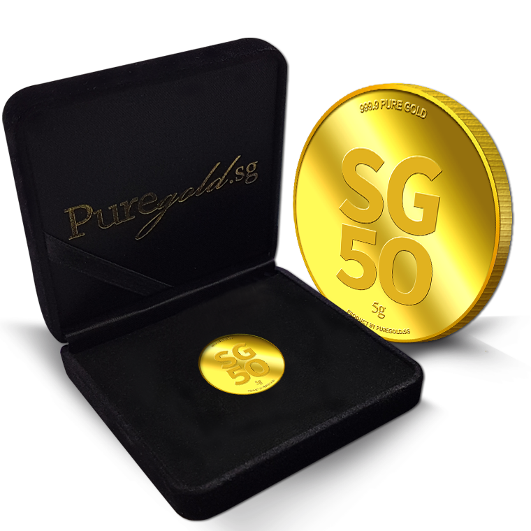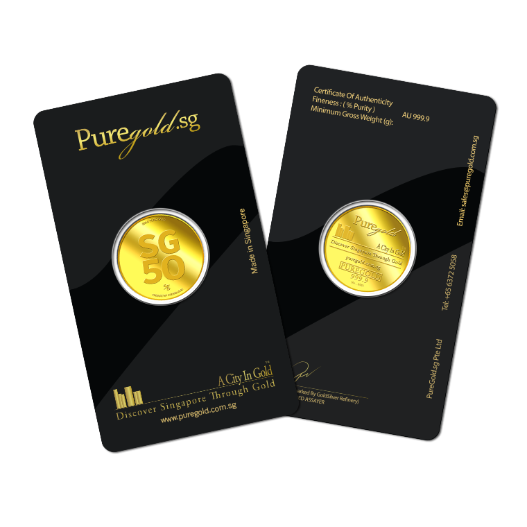 The image is embossed on a 5 grams 999.9 fine gold medallion.