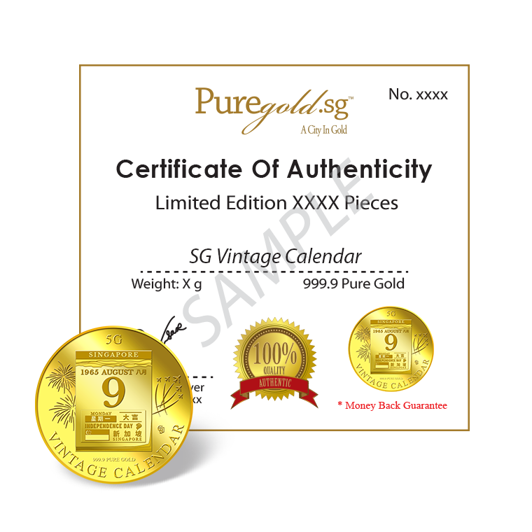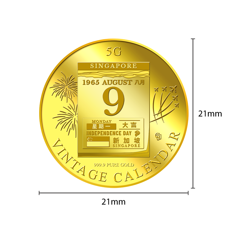 The image is embossed on a 5 grams 999.9 fine gold medallion.
